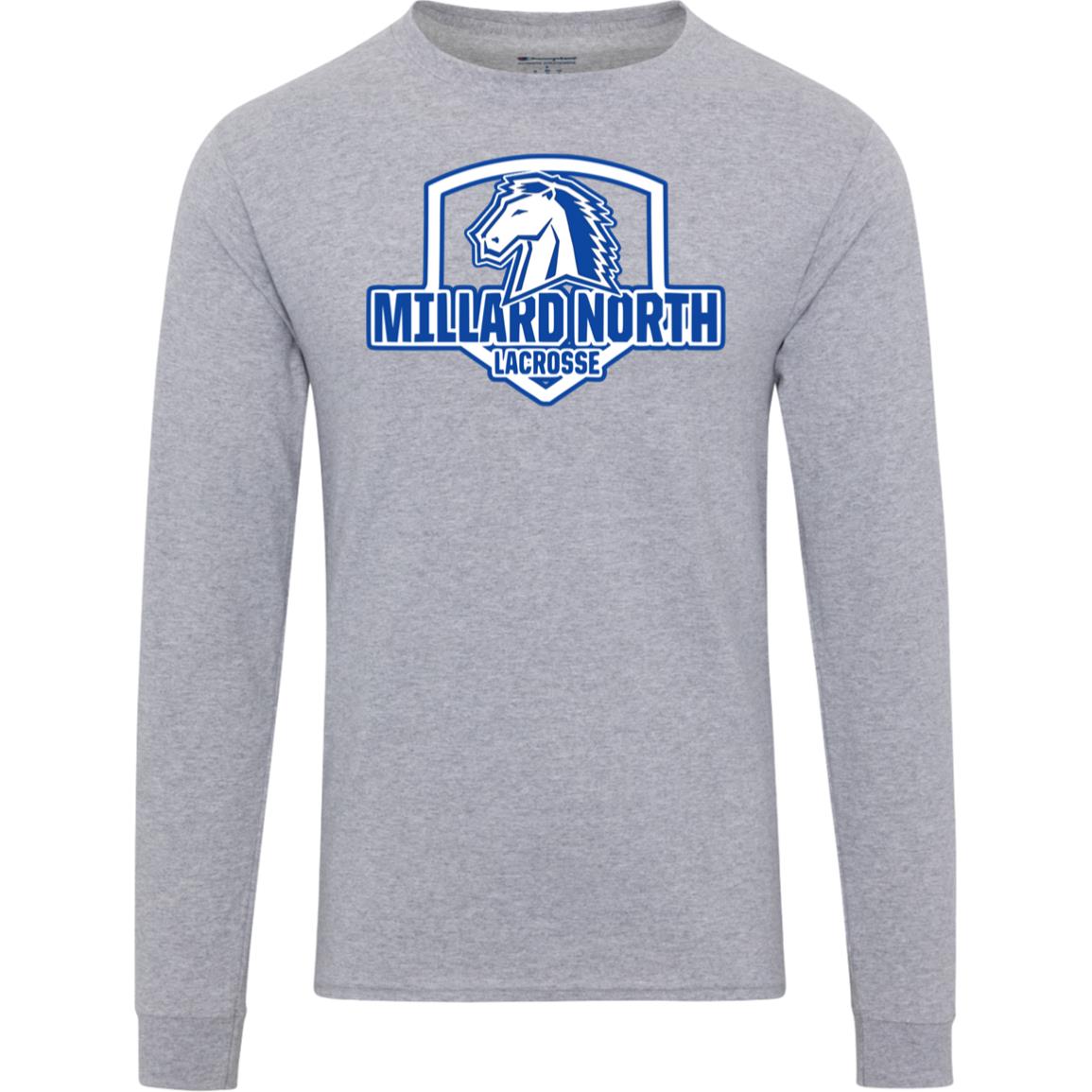 Update your game day wardrobe with this staple men's Champion long sleeve shirt. The soft cotton fabric and relaxed fit allow to wear the shirt on its own, or layer it with your favorite team jacket. Plus, it has the added bonus of a Champion “C” logo on the left sleeve.